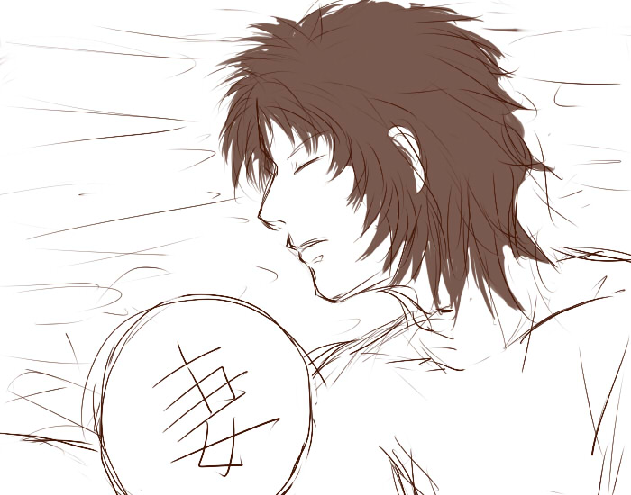 「紫龍だな。」と、ですは思いました。紫龍は、ぼろぼろの白いシャツをまくし上げて、頭の先まで水にひたりながら、聖衣を入れるパンドラボックスというはこをしまっていました。長い髪をたらした背中のど真ん中に、派手なポーズの龍が一匹、大きな刺青みたいにへばり付いていました。