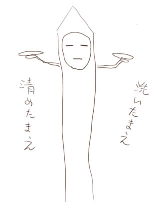 間違いなく皿洗いの神(上図)に魅入られてる。もう嫌だ。洗いたくない。金縁のオシャレ食器を使うのをやめてくれ。食器洗い機に入れられねんだよ!(涙)