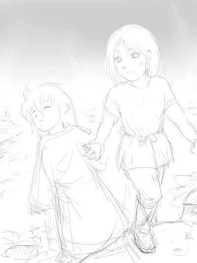 手を引っ張られてしぶしぶ連れられて行くシャカ。